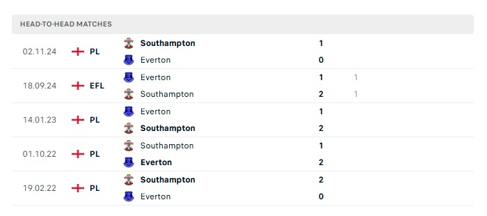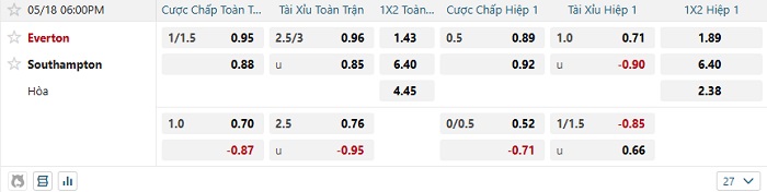 - Kèo tỷ số H2 Everton vs Southampton: 2-0