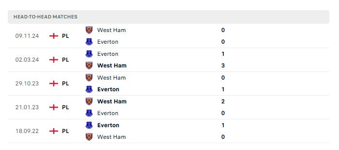- Kèo tỷ số H1 Everton vs West Ham Utd: 0-0