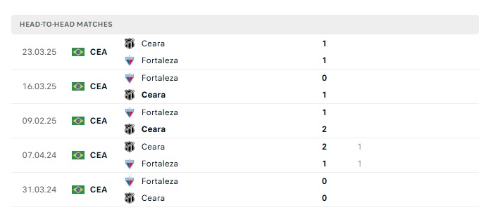 • Kèo tỷ số H2 Fortaleza vs Ceara: 0-0