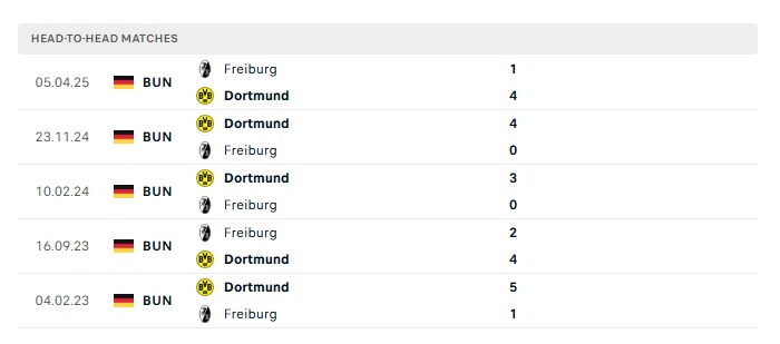 - Kèo tỷ số H2 Freiburg vs Dortmund: 0-2