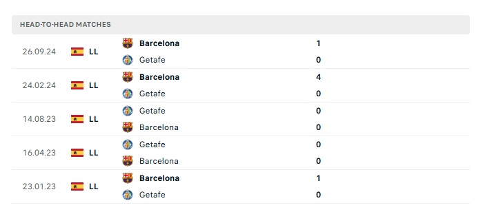 • Kèo tỷ số H2 Getafe vs Barcelona: 1-3