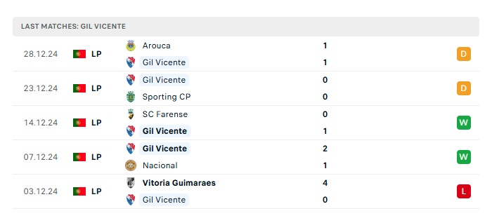 Phong độ gần đây Gil Vicente vs Rio Ave
