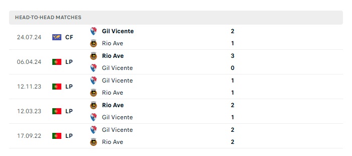 Lịch sử đối đầu Gil Vicente vs Rio Ave