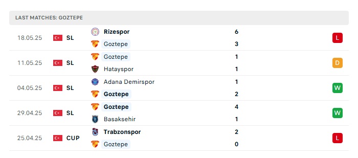 Nên biết rằng, Galatasaray với sức mạnh áp đảo đã duy trì được chuỗi trận toàn thắng rất dài. Tính trong 5 vòng gần nhất, đội bóng này đã toàn thắng cả 5 trận liên tiếp để lên ngôi vương. Trong khi đó thì Goztepe trong 5 vòng đã qua, họ chỉ thắng 2, hòa 2 và thua 1. Dù vậy thì khoảng cách này cũng không còn mang nhiều ý nghĩa khi mà đội khách đã đăng quang mùa giải năm nay.