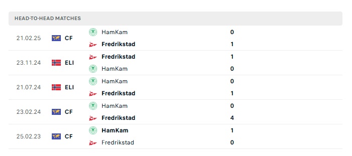 Lịch sử đối đầu HamKam vs Fredrikstad