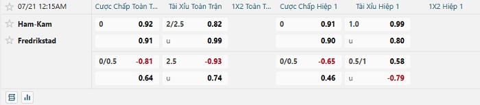 Bảng tỷ lệ kèo nhà cái HamKam vs Fredrikstad