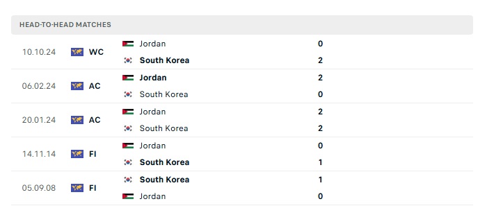 Lịch sử đối đầu Hàn Quốc vs Jordan