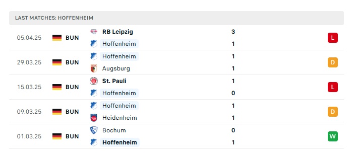 - Phong độ gần đây Hoffenheim