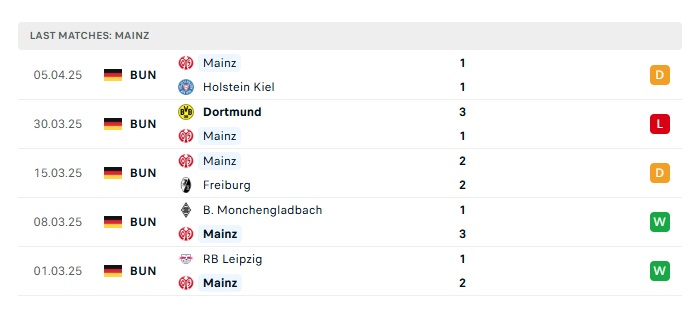 - Phong độ gần đây Mainz