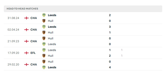 Lịch sử đối đầu Hull City vs Leeds Utd
