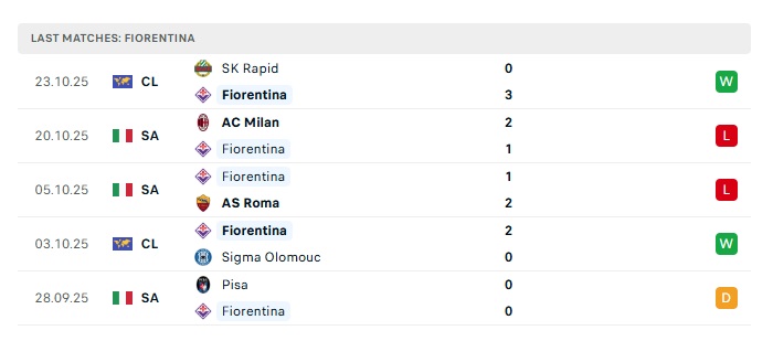 - Phong độ gần đây Fiorentina