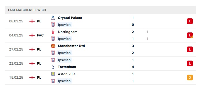 Phong độ gần đây Ipswich vs Nottingham Forest