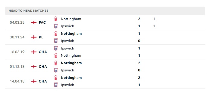 Lịch sử đối đầu Ipswich vs Nottingham Forest