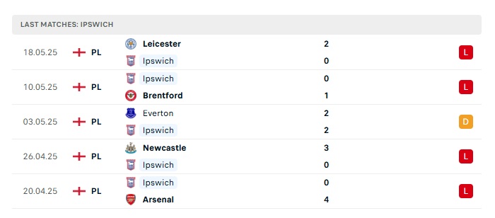 Phong độ gần đây Ipswich  vs West Ham Utd