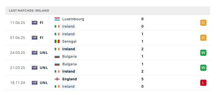 - Phong độ gần đây Ireland