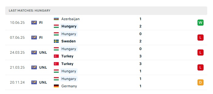 - Phong độ gần đây Hungary