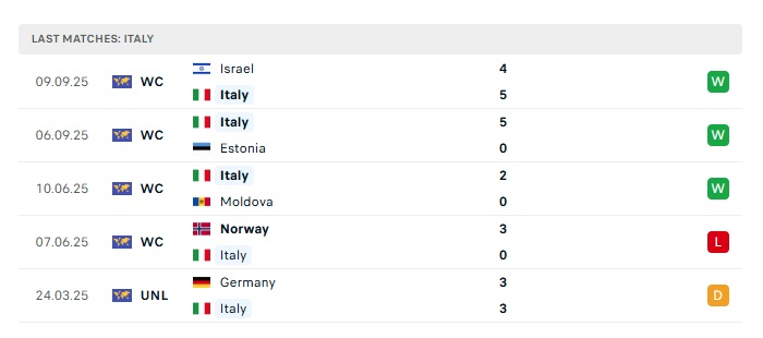 - Phong độ gần đây Italia