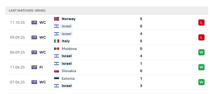 - Phong độ gần đây Israel