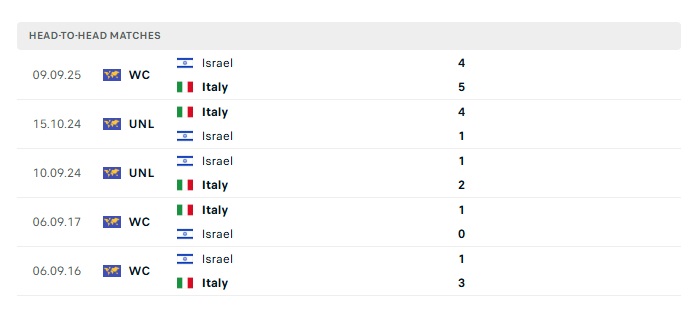 Theo ghi nhận, Italia cùng lợi thế lớn từ sân nhà dù sao cũng sẽ giúp cho Italia giành chiến thắng. Trong 5 lần gần nhất đụng độ nhau, Italia đã toàn thắng cả 5 trận trước đối thủ Israel. Ngoài ra thì trong liên tiếp 2 trận sân nhà đã qua, Italia cũng đã có 2 trận toàn thắng. Do đó, kèo châu Âu trận đấu hôm nay sẽ có Italia là lựa chọn đầu tư an toàn nhất trong cả 2 hiệp.