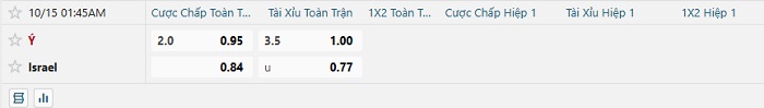 Soi kèo châu Á, kèo Italia vs Israel