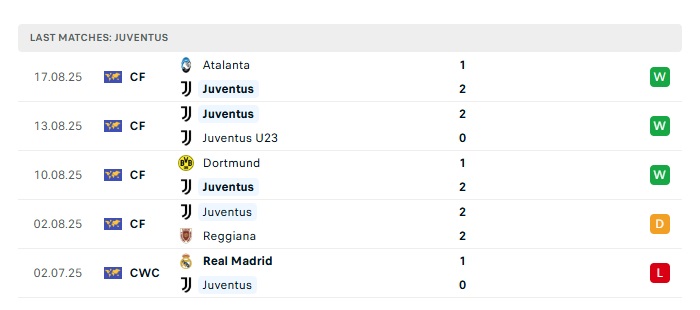 - Phong độ gần đây Juventus