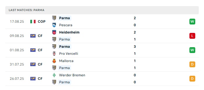 - Phong độ gần đây Parma