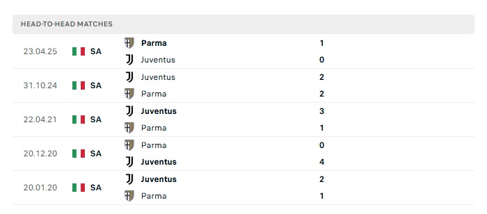 Lịch sử đối đầu Juventus vs Parma