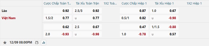 Bảng tỷ lệ kèo bóng đá Lào vs Việt Nam