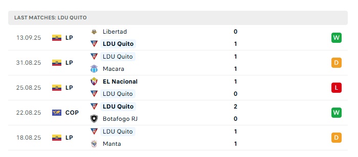 - Phong độ gần đây LDU Quito