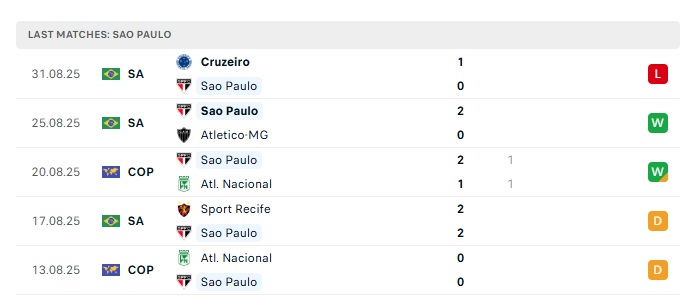 - Phong độ gần đây Sao Paulo