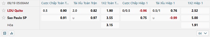 Bảng kèo bóng đá LDU Quito vs Sao Paulo