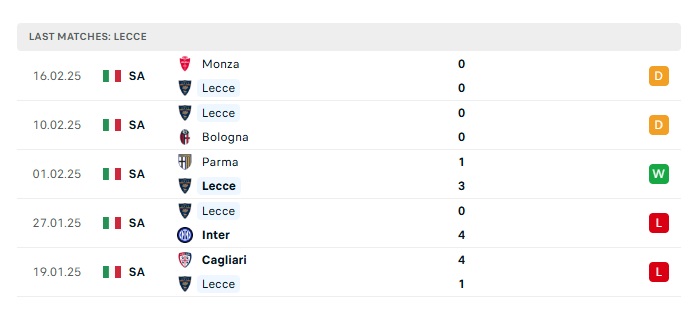 Lecce: Falcone; Gendrey, Baschirotto, Pongracic, Gallo; Almqvist, Ramadani, Blin, Dorgu; Oudin; Krstovic.