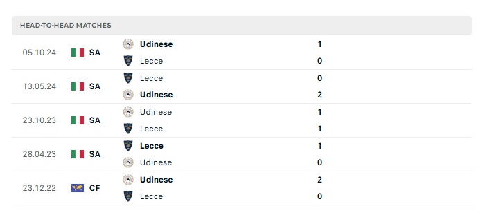 • Kèo tỷ số H2 Lecce vs Udinese: 0-0