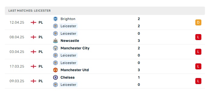 - Phong độ gần đây Leicester City