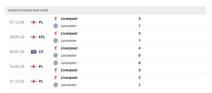 Lịch sử đối đầu Leicester City vs Liverpool