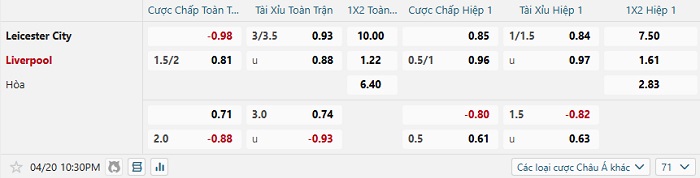 Soi kèo châu Á, kèo Leicester City vs Liverpool