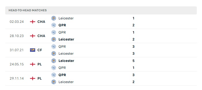 - Kèo tỷ số H2 Leicester City vs QPR: 1-1