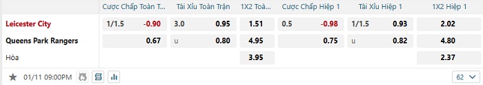 Bảng tỷ lệ kèo bóng đá Leicester City vs QPR
