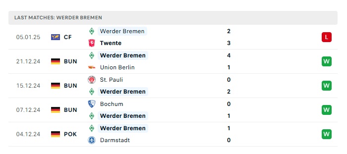 Đang có phong độ đi xuống trong thời gian qua, Leipzig ngày hôm nay sẽ gặp nhiều khó khăn trước Werder Bremen. Hiện tại, chủ nhà Leipzig đang chỉ có được vị trí thứ 4 trên BXH với 27 điểm sau 15 vòng đấu. Trong khi đó thì Werder Bremen lúc này đang có mặt ở vị trí thứ 7 cùng 25 điểm. Như vậy thì dù sẽ khó khăn nhưng cửa thắng dành cho Leipzig ngày hôm nay vẫn rất cao so với đối thủ.