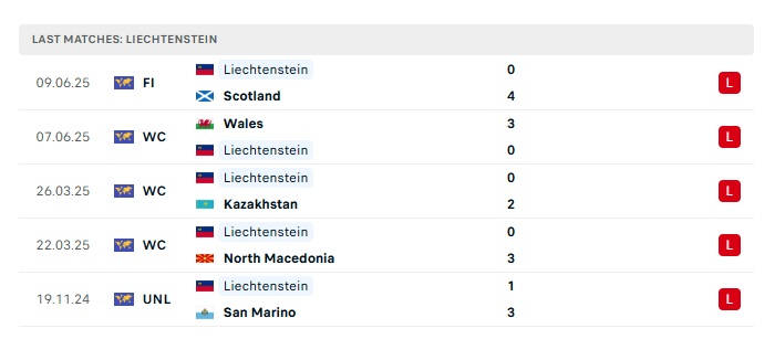 Phong độ gần đây Liechtenstein  vs Bỉ