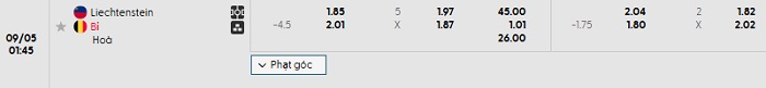 Soi kèo châu Á, kèo Liechtenstein vs Bỉ