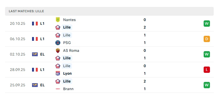 • Phong độ gần đây Lille