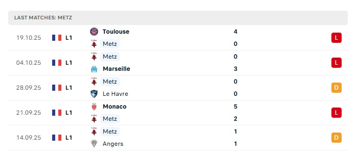 • Phong độ gần đây Metz