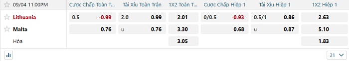 Soi kèo châu Á, kèo Lithuania vs Malta