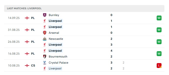 - Phong độ gần đây Liverpool