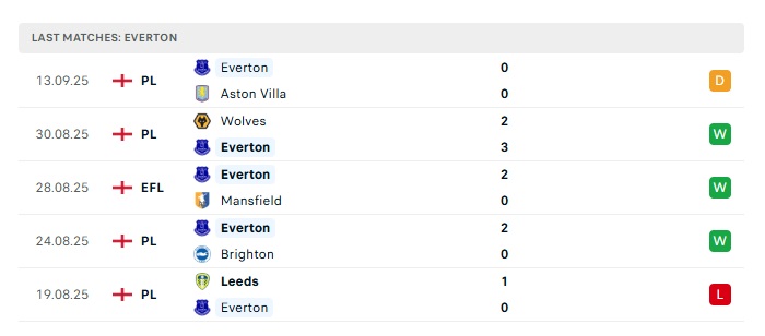 - Phong độ gần đây Everton