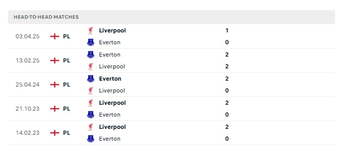 Phong độ gần đây Liverpool vs Everton
