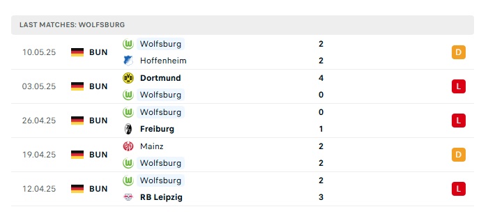 Phong độ gần đây M.gladbach vs Wolfsburg