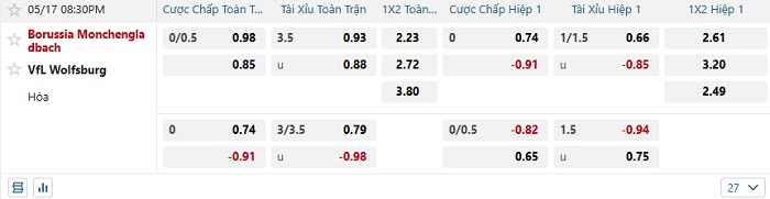 Bảng tỷ lệ kèo nhà cái M.gladbach vs Wolfsburg
