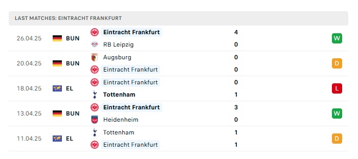 Phong độ gần đây Mainz vs Ein.Frankfurt